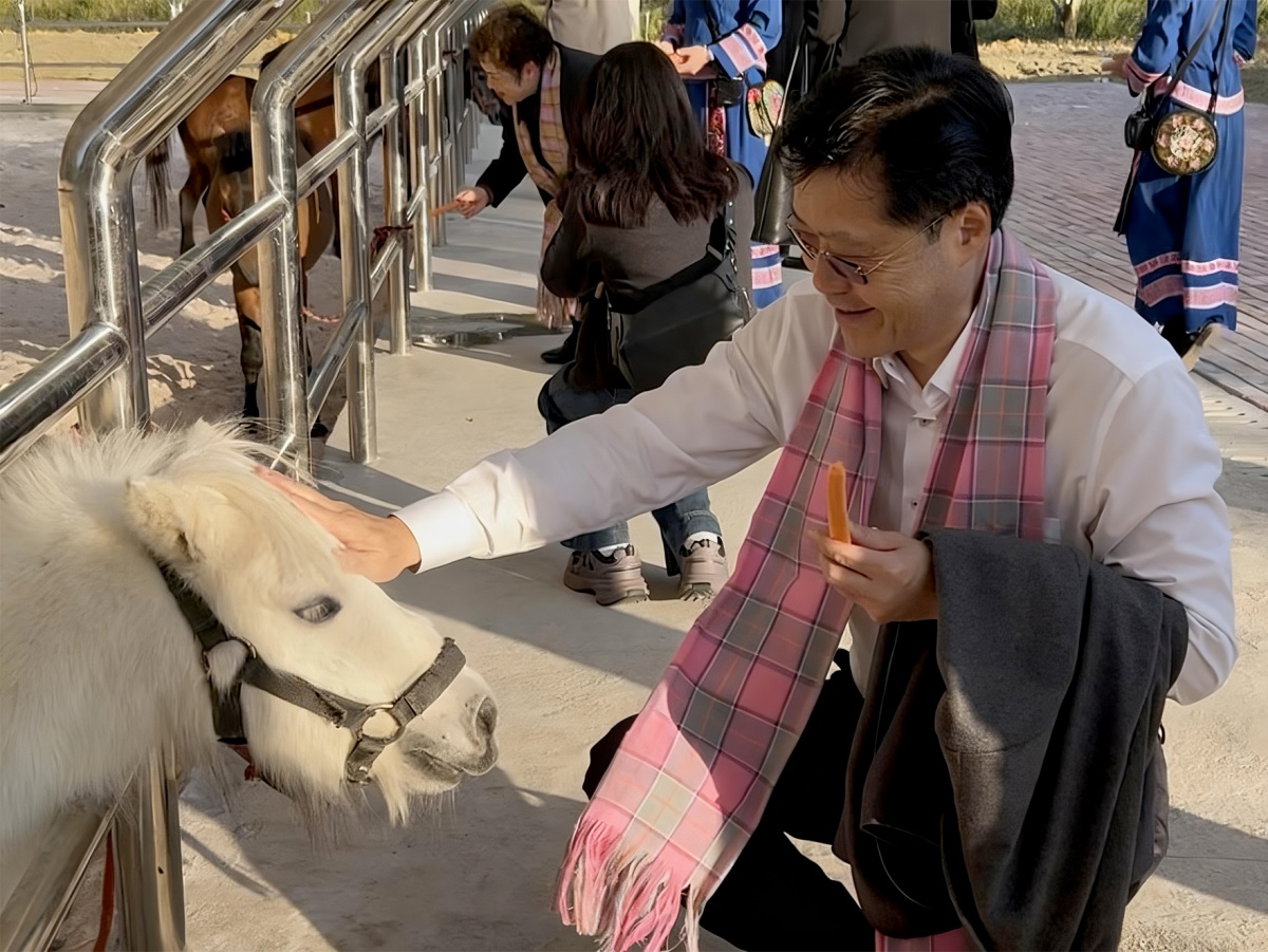 德保矮马保护发展示范点是本次最受参访团欢迎的“打卡地”。参访团代表们喂矮马、骑矮马、参与矮马赛跑竞猜,被这群呆萌温顺的小家伙们“俘获”。“它们看着萌萌的,但在竞技场上载人奔跑时,小小身躯爆发出超强力量,这种反差令人惊讶。”马来西亚访问学者侯永欢啧啧称奇。