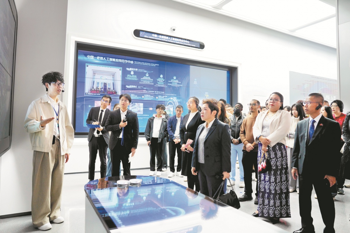 “通过人工智能技术,我们能精准开展洪水过境推演规划;土地AI系统整合了历史气象数据与土壤信息,可为农户提供全流程土地管理方案,目前已在东盟国家30余个农业项目中落地。”在中国—东盟国家人工智能应用合作中心,工作人员一边操作演示设备,一边结合实际案例讲解AI技术应用场景。参访团代表们仔细聆听介绍,不时俯身观察、提问交流,对广西人工智能技术的跨境应用和落地成果给予积极评价。