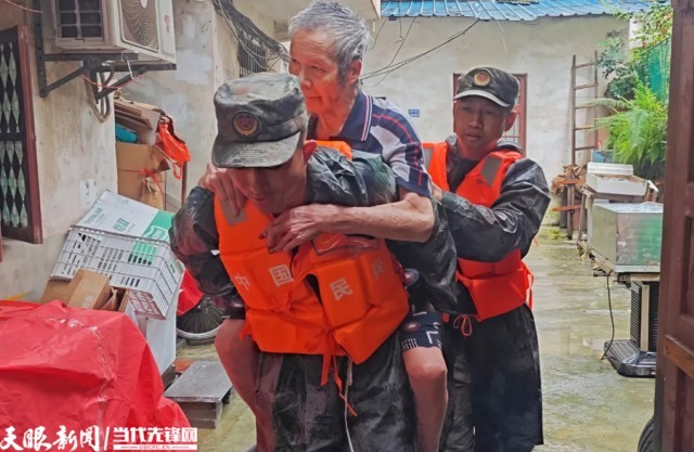 当排查至一间临河房子时,一位白叟弱小的回应让他打了个激灵。“白叟家,别慌!我背您出去!”俯身蹲下,稳稳地扶上后背,银发紧贴着他斑白的鬓角,在暴虐的暴雨中紧紧相依,构成一幅温暖的图像。